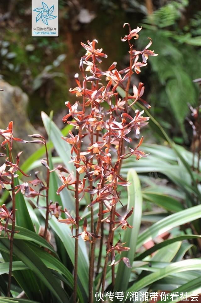 墨兰Cymbidium sinense,得名于花色,花朵通常为暗紫色或浅紫褐色。花序具10-20朵或更多的花,“花多叶长”是其主要特征。墨兰又被称为“报岁兰”,花期为10月至翌年3月,集中在春节前后。