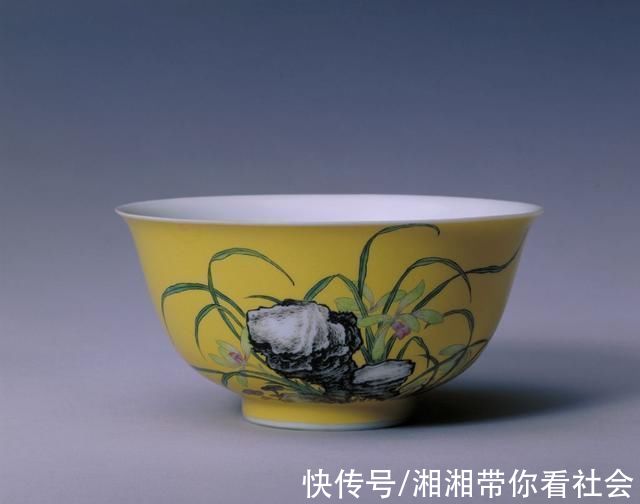 清雍正 淡黄地珐琅彩兰石纹碗(图片来源:故宫博物院)